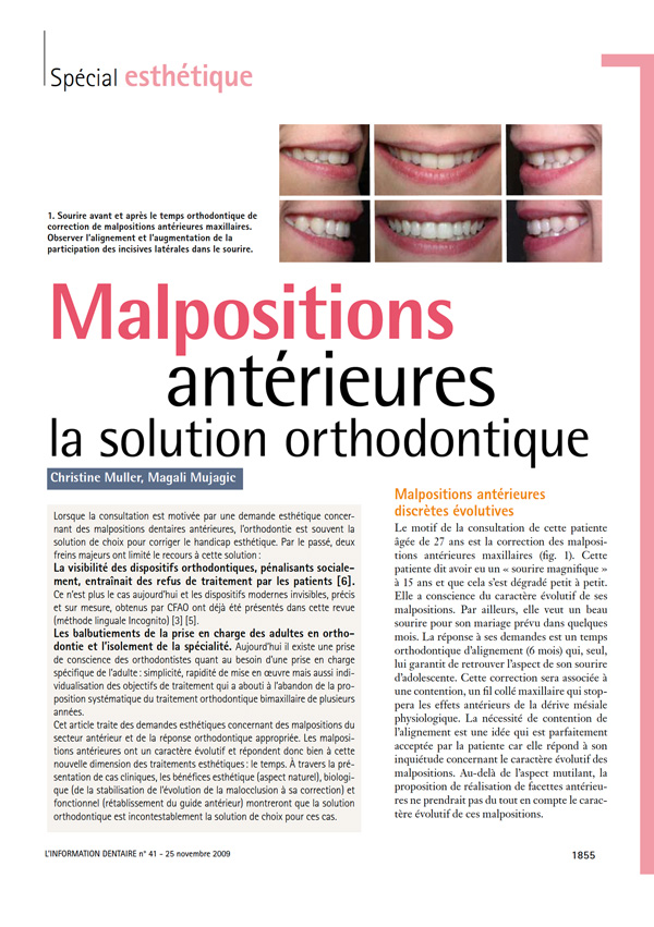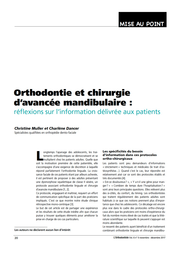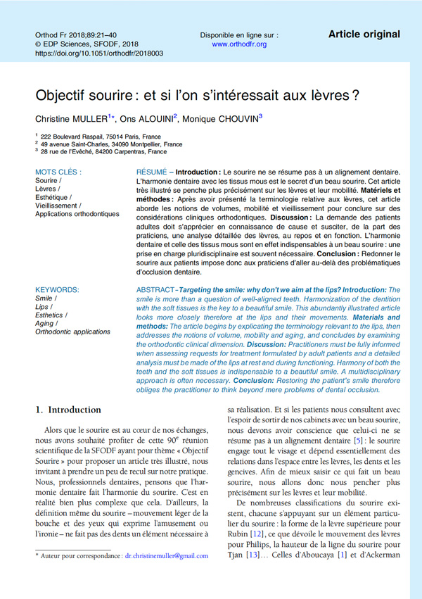 Cela se traduit par des articles dans des revues spécialisées, des communications lors de conférences au sein de la communauté des orthodontistes (lien vers les publications) et une attention particulière accordée aux avancées les plus récentes, techniques et scientifiques, dans l’orthodontie de l’adulte.