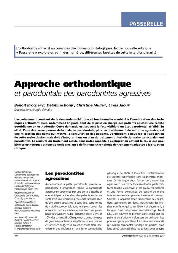 L’orthodontiste se doit d’intégrer cette destruction tissulaire à son diagnostic global, au
